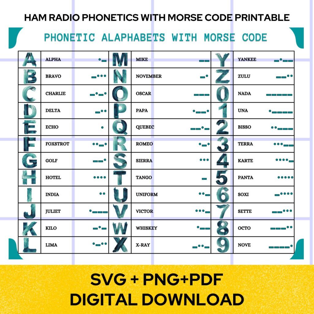 HAM RADIO PHONETICS WITH MORSE CODE DIGITAL DOWNLOAD