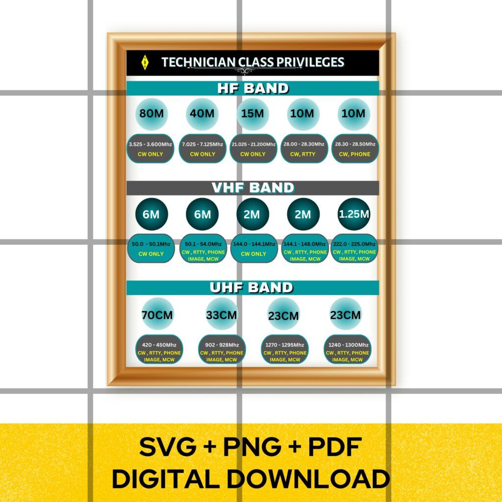 It is a High quality Digital Image of “HAM RADIO TECHNICIAN CLASS PRIVILEGES” chart in 11×14 Inches.