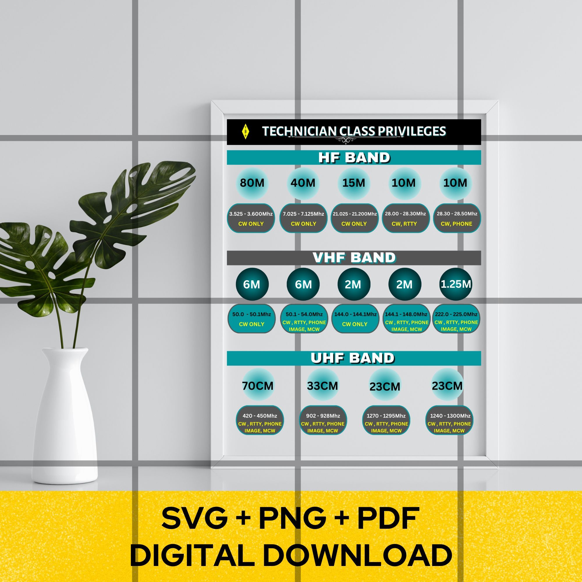 It is a High quality Digital Image of “HAM RADIO TECHNICIAN CLASS PRIVILEGES” chart in 11×14 Inches.
